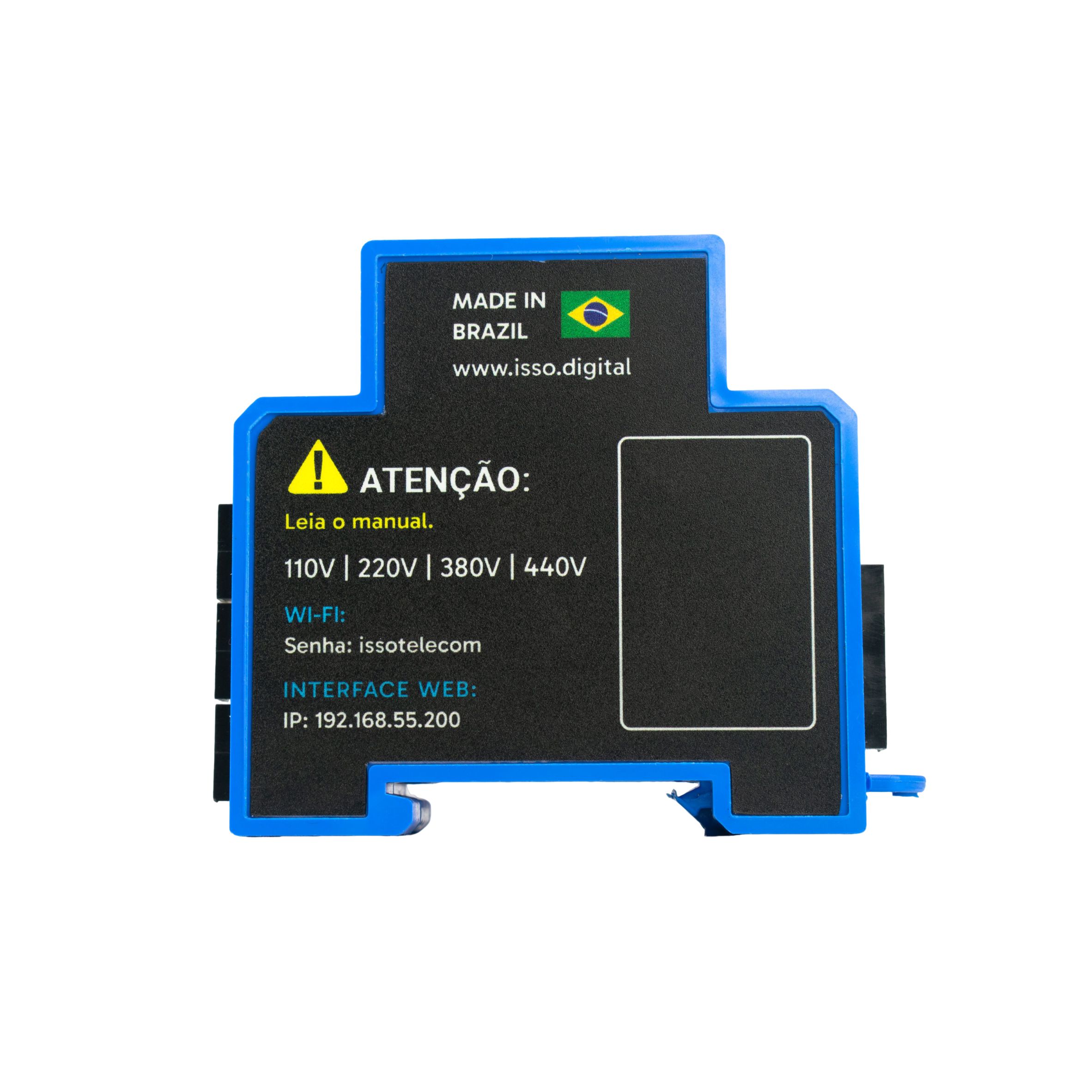 01 - Analisador de energia elétrica ISSO, modelo BLUE BOX D200A trifásico bidirecional TRUE RMS, para fixação em trilho DIN-35;